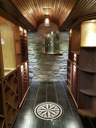 A wall treatment can really help set the mood in your basement wine cellar or wine room. Some popular ideas include paneling made from wooden wine crates to wine corks and classic brick. Consider lining the wall with our Natural Stone Veneer Panels; the perfect backdrop to showcase your bottles. We carry ledgestone, mosaic stone, river rock stone and many more in a variety of shapes and colors. From on-trend Alaska Gray real stone veneer panels to archaic Boston Blend real stone thin veneer styles, we have a look for everyone. Made of real stone in the USA, this high-quality finish adds authenticity and prestige to your wine cellar design.