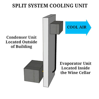 Split System Cooling- works like your home central air conditioning. Half of the unit is located inside the cellar and the other half is located outside of your home. Theuse units usually require installation by a certified HVAC technician.