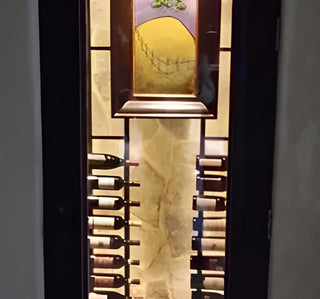 Our VintageView Floor to ceiling frames work with lighting and artwork to both store wine and make it an artsy focal point..