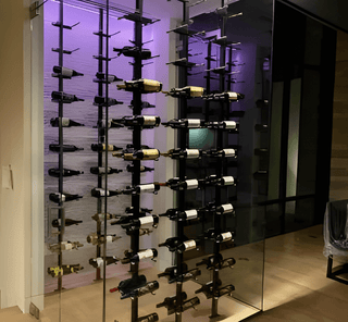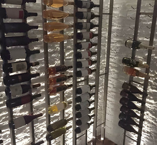 An easy, chic way to create floating wine walls. Great against glass & in corners