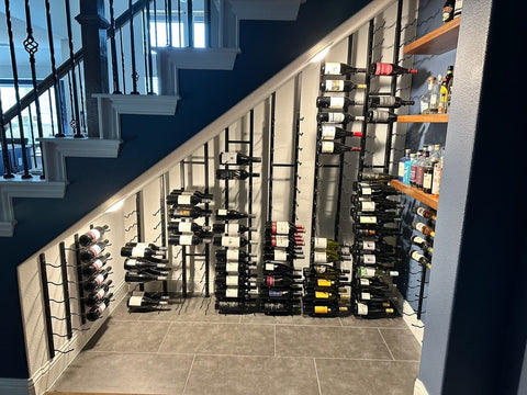 From blueprint to bottle display! This customer enlisted our expertise while their home was still taking shape, pinpointing the perfect spot for their future wine cellar. With our seasoned designers, we brought their vision to life even amidst the bare bones of construction. Opting for sleek metal wine racks from VintageView, they transformed an often-overlooked space under the stairs into a stunning showcase for their impressive collection. Cheers to maximizing every inch of space with style!