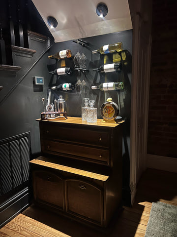 Cheers to turning wine storage into a talking point! This customer elevated their cozy seating area by opting for Vino Pins from VintageView, effortlessly blending their wine racks into the room's design. Now, every bottle becomes a piece of art, sparking conversation and enhancing the ambiance. Raise a glass to functional elegance!